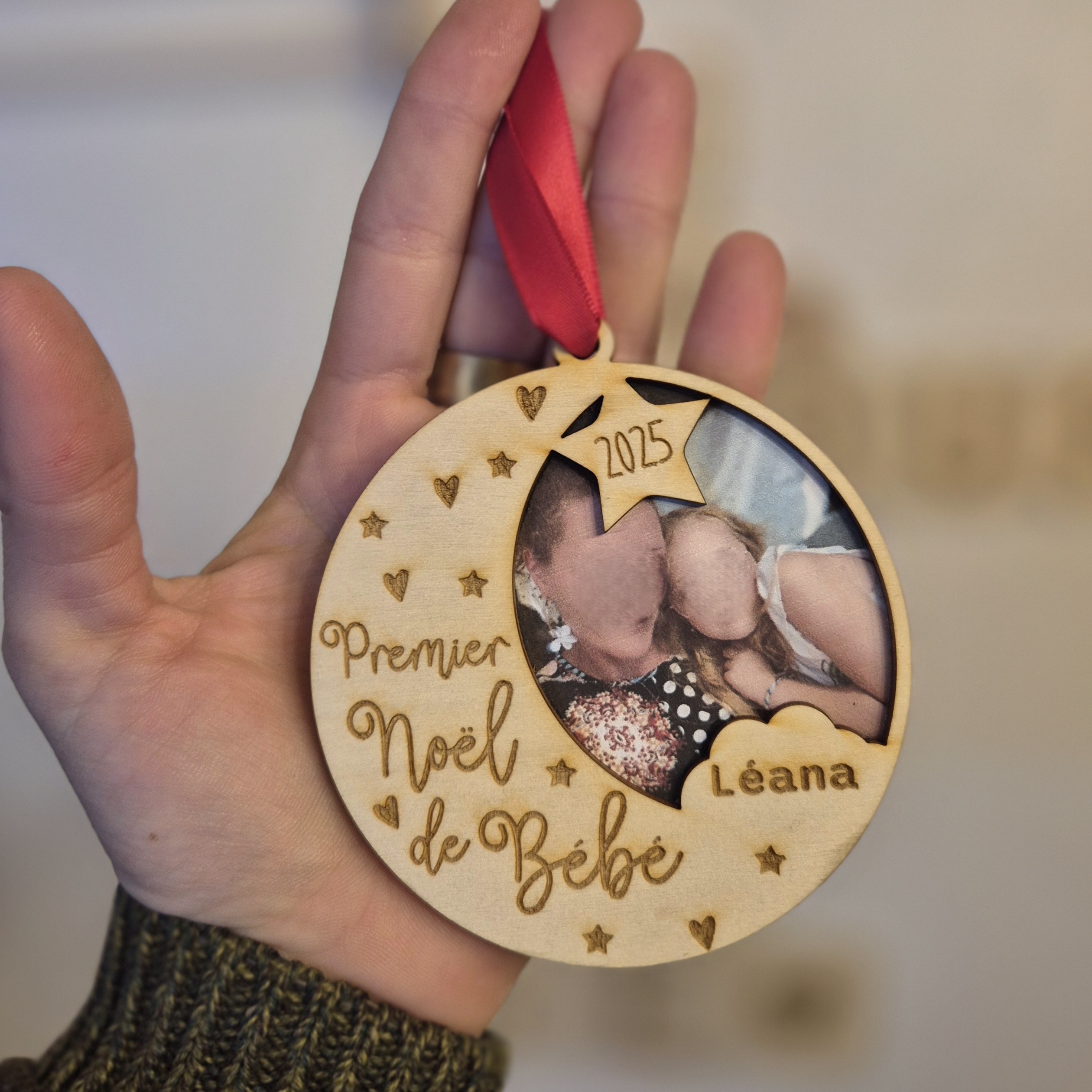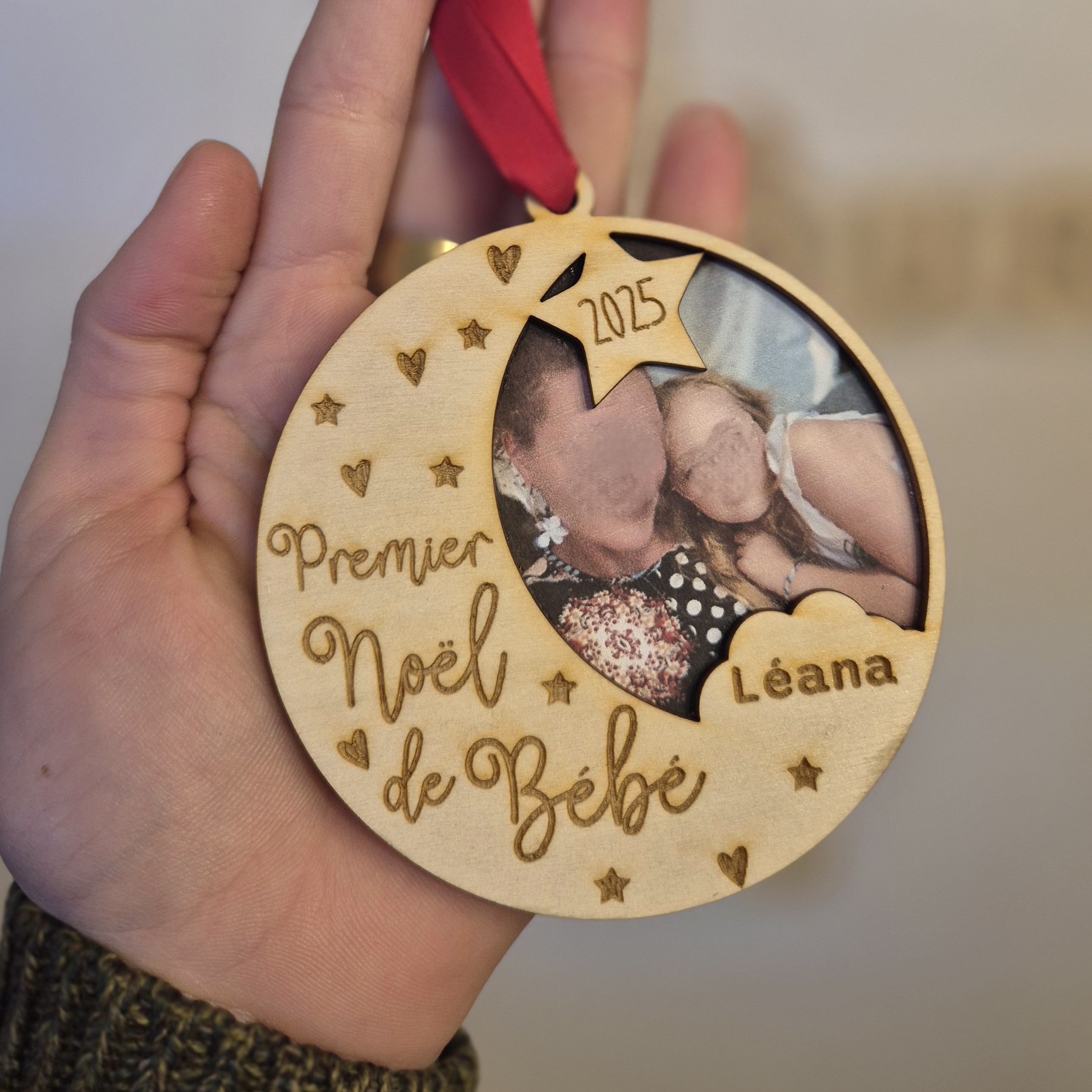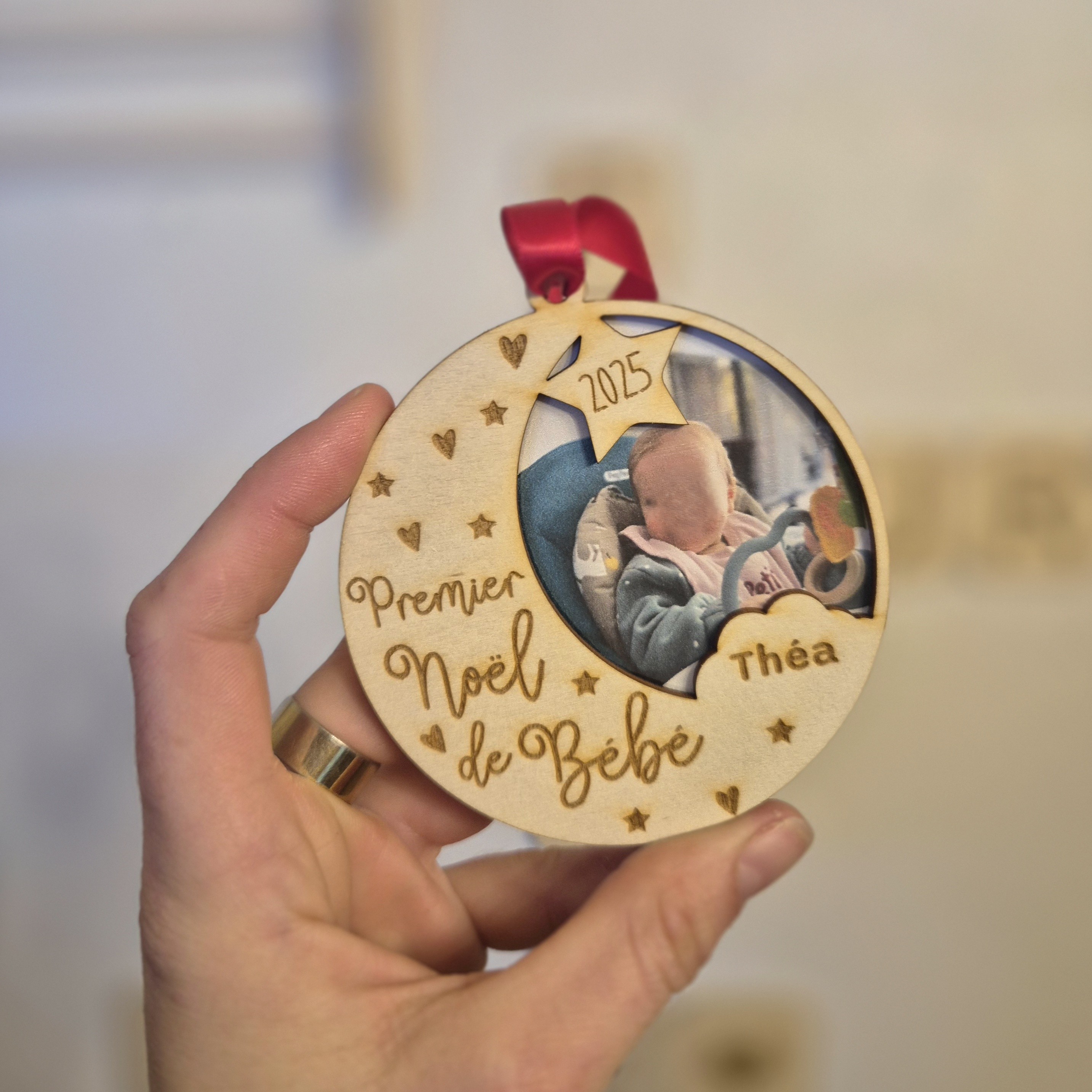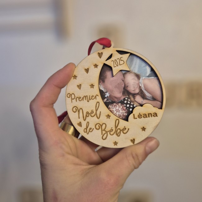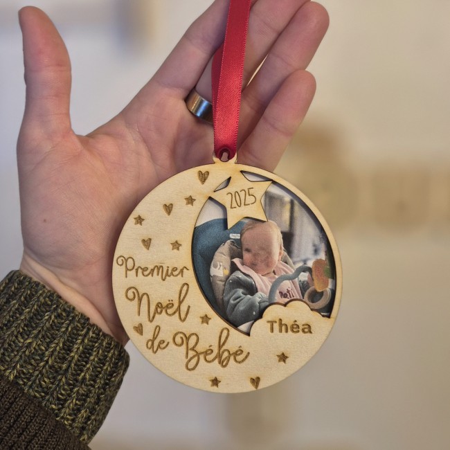 Boule de Noël - Premier Noël de Bébé avec une photo imprimée et placée dans la boule. La photo est comprise dans l'achat de la boule. (Pensez à me l'envoyer ainsi que le prénom.) 8.5cm de diamètre. 😍
