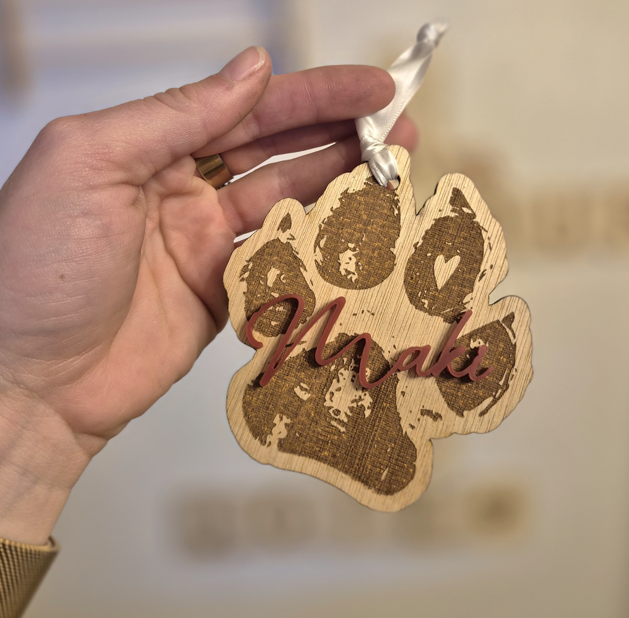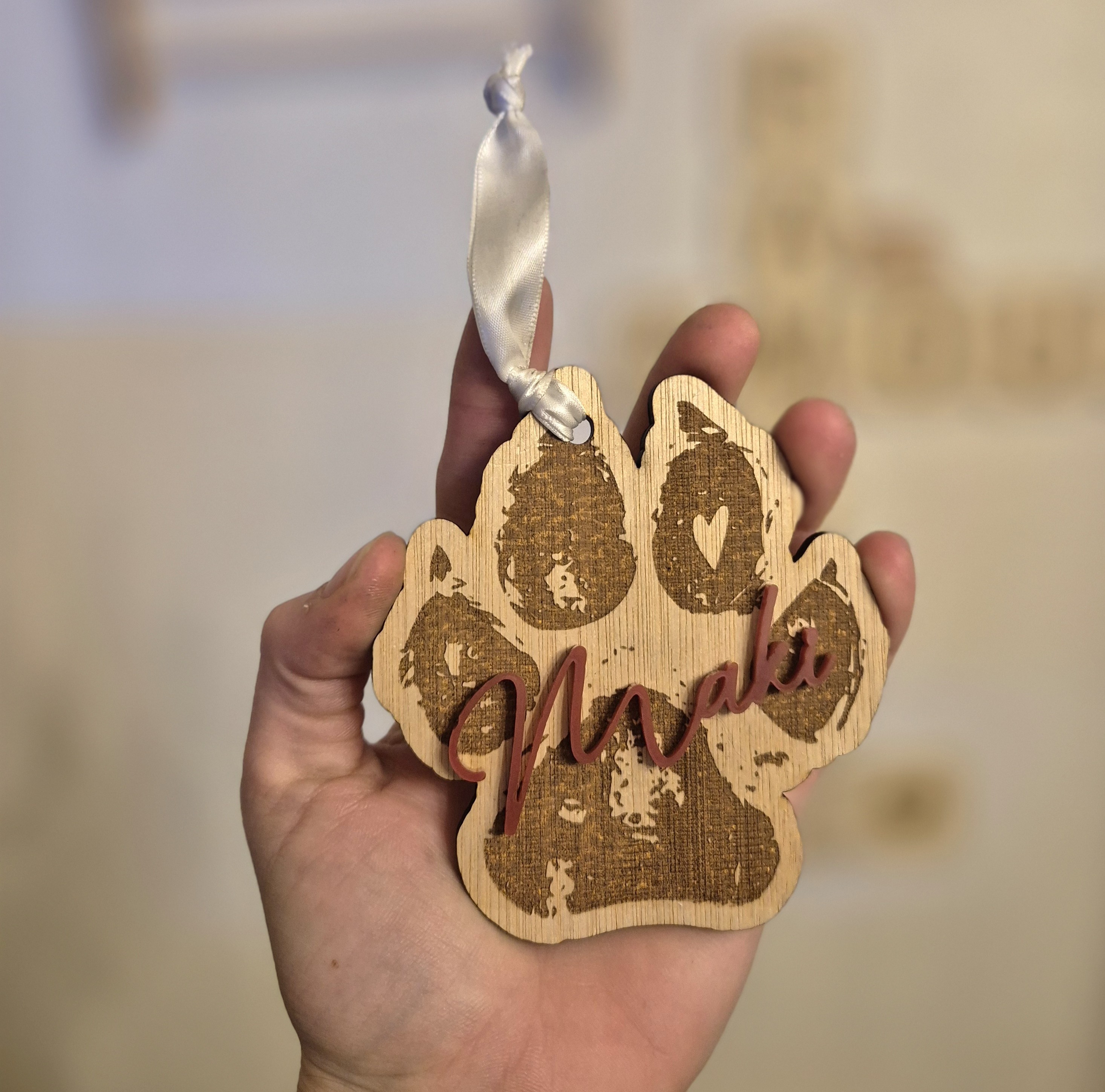 🎄 Décoration de sapin personnalisée – Forme de patte de chien avec prénom 🐾